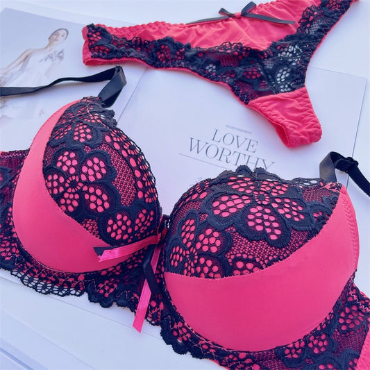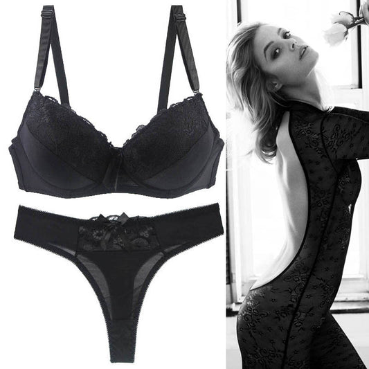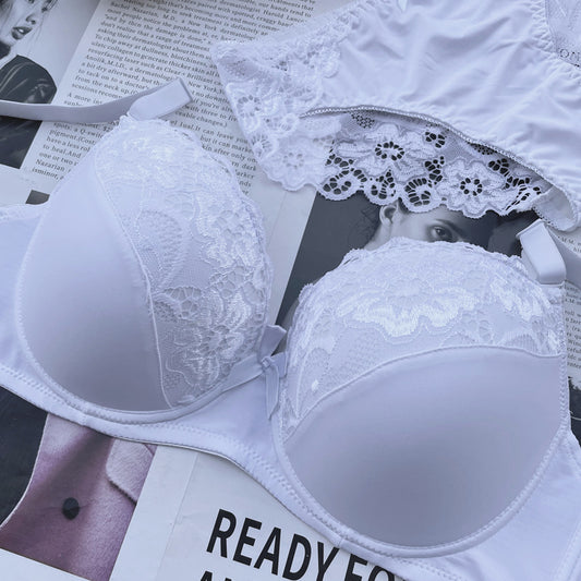 French Lace Sexy Ultra Thin Soft Steel Ring Bra Set