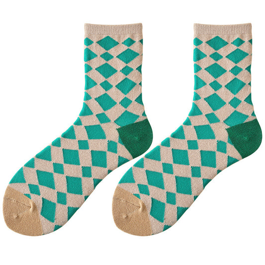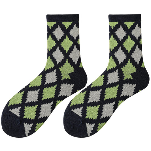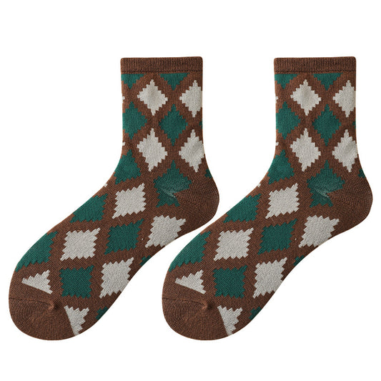 Thin Section Mid-calf Retro Rhombic Jacquard Pile Tide Socks Cotton Socks