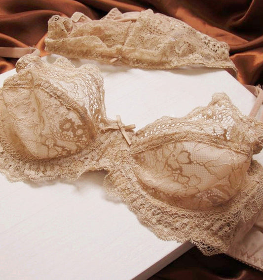 French Lace Sexy Ultra Thin Soft Steel Ring Bra Set
