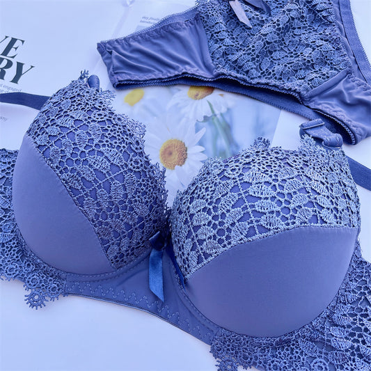 Ultra Thin French Lace Sexy Plus Size Bra Set