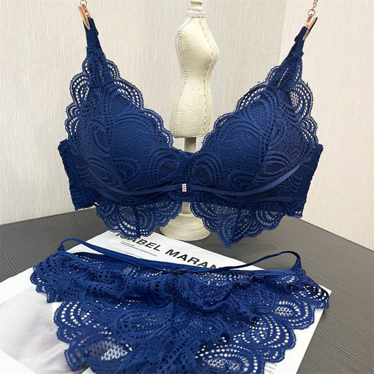French Sexy Deep V Lace Ultra Thin Bra Set