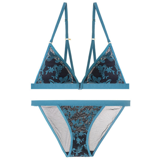 Sexy Lingerie Ultra-thin Embroidered Lace Gathering Bra Set