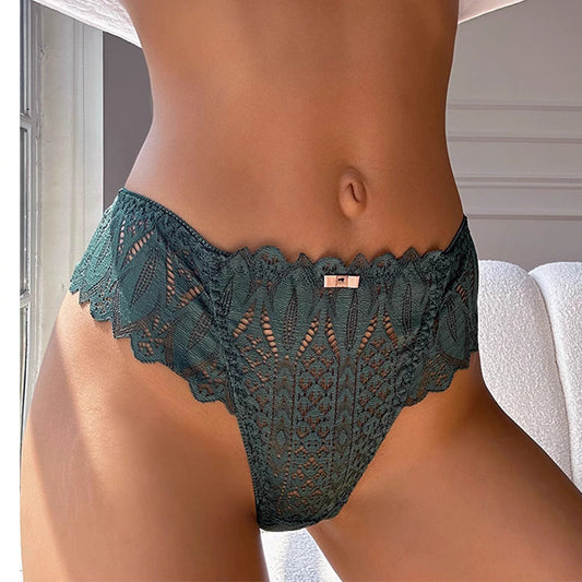 Sexy Lace Low Waist Hollow Out Rear Cross Thong Panties