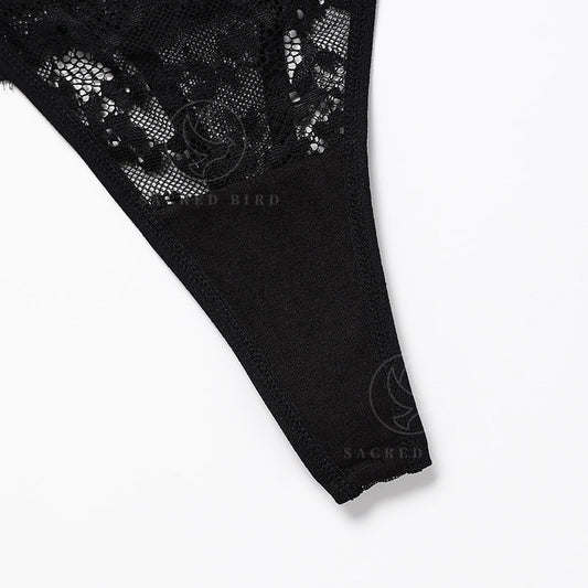 Sexy Lace Cross Tie Hollow Out Thong Panties