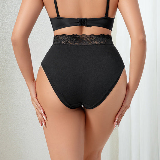 High Waist Sexy Hip Flat Angle Lace Splicing Anti-Glare Panties