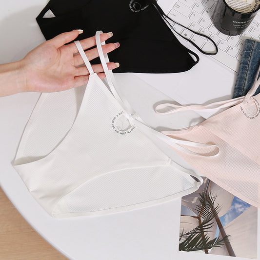 7A Antibacterial Spaghetti Strap Ice Silk Triangle Panties No Trace Sports Panties