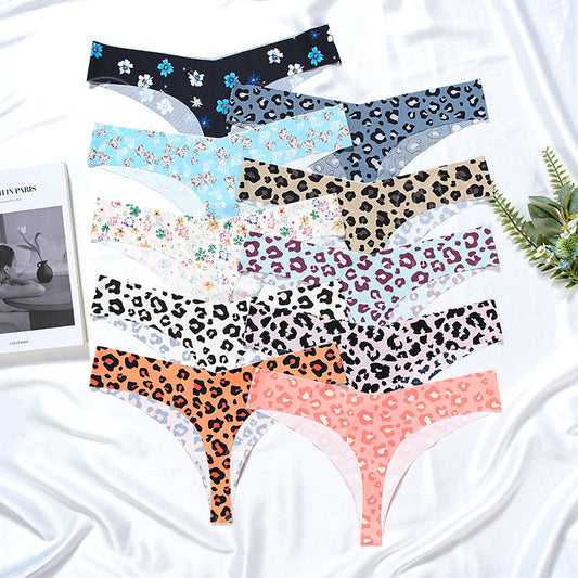 Sexy Low Waist Plus Size Panties Seamless Ice Silk Leopard Thong