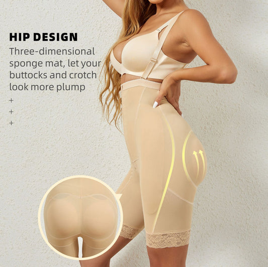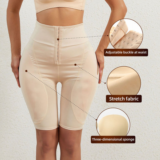 High Waisted Fixed Foam Padded Buttock and Crotch Plumping Buttoned Shapewear